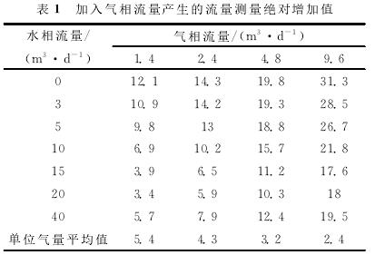 摘要:在三相流實(shí)驗(yàn)裝置上采用傘式集流器對(duì)渦輪流量計(jì)在氣/水兩相流及油、氣、水三相流中進(jìn)行實(shí)驗(yàn),獲得了渦輪流量計(jì)在氣/水兩相流及油/氣/水三相流條件下的實(shí)驗(yàn)數(shù)據(jù),分析氣體對(duì)渦輪流量計(jì)測(cè)量流量的影響。在氣體流量較低時(shí),渦輪流量計(jì)與液相流量的響應(yīng)關(guān)系受油水兩相含水率的影響較小,可以將油/氣/水三相的流量測(cè)量問題簡(jiǎn)化成氣/水兩相的流量測(cè)量問題。氣體會(huì)對(duì)渦輪流量計(jì)產(chǎn)生較大的測(cè)量誤差,當(dāng)氣體流量為3m3/d、液相流量小于10m3/d的條件下以及氣體流量大于3m3/d的條件下,液相流量測(cè)量誤差大于10%。 0引言 渦輪流量計(jì)已廣泛應(yīng)用于井下油、水兩相流流量測(cè)量,它具有儀表常數(shù)穩(wěn)定的優(yōu)點(diǎn),在油水兩相流條件下可以正確測(cè)量流量,并取得良好的應(yīng)用效果。渦輪流量計(jì)通常在油/水兩相流條件下進(jìn)行標(biāo)定,對(duì)渦輪流量計(jì)的也主要在油/水兩相流下進(jìn)行。大慶油田及中國(guó)多數(shù)陸相油田的生產(chǎn)井普遍存在產(chǎn)氣、脫氣現(xiàn)象,在測(cè)試井段存在油氣水三相流的情況。氣相的加入使渦輪流量計(jì)的響應(yīng)特性發(fā)生了明顯的變化,對(duì)產(chǎn)出剖面的測(cè)量產(chǎn)生了影響,氣體對(duì)低產(chǎn)井的測(cè)量影響尤為嚴(yán)重,因?yàn)樵诘彤a(chǎn)井中容易出現(xiàn)高含氣率情況,有必要渦輪流量計(jì)在油井中產(chǎn)氣時(shí)的響應(yīng)特性。 渦輪流量計(jì)在油/氣/水三相流下的響應(yīng)已有人針對(duì)不同的測(cè)井儀器;趥慵鳒u輪流量計(jì)與放射性密度-持水率計(jì)組合儀在油氣水三相流流動(dòng)裝置中的動(dòng)態(tài)結(jié)果,建立了三相流渦輪流量計(jì)統(tǒng)計(jì)測(cè)量模型。對(duì)渦輪流量計(jì)在水平模擬井中測(cè)量油氣水三相流進(jìn)行了實(shí)驗(yàn)。 在多相流模擬實(shí)驗(yàn)裝置上采用渦輪流量計(jì)在油/氣/水三相流及氣/水兩相流條件下開展室內(nèi)動(dòng)態(tài)實(shí)驗(yàn),渦輪流量計(jì)在油、氣、水三相流及氣/水兩相流低產(chǎn)氣(氣體流量不大于15m3/d)條件下的響應(yīng)特性,計(jì)算氣體對(duì)渦輪流量計(jì)測(cè)量液相流量產(chǎn)生的測(cè)量誤差,為該儀器應(yīng)用到三相流的生產(chǎn)測(cè)井中提供借鑒。 1實(shí)驗(yàn)條件及實(shí)驗(yàn)方案 實(shí)驗(yàn)在大慶油田測(cè)井試井檢測(cè)實(shí)驗(yàn)中心多相流實(shí)驗(yàn)室24m模擬井中進(jìn)行。透明的有機(jī)玻璃井筒內(nèi)徑為125mm,實(shí)驗(yàn)介質(zhì)為自來(lái)水、柴油和壓縮空氣,實(shí)驗(yàn)中油、氣、水的流量可以由儀表正確控制和計(jì)量。實(shí)驗(yàn)儀器采用安裝有傘式集流器的渦輪流量計(jì)。傘式集流器具有16根金屬傘筋,傘布采用高強(qiáng)度薄織料,質(zhì)密不透氣,集流效果好。采用傘式集流器可以使測(cè)量通道內(nèi)的流體流速提高幾十倍,并且使被測(cè)流體混合更加均勻。渦輪流量計(jì)安裝在集流傘上部,油/氣/水混合流體被集流傘集流后,從進(jìn)液口流入測(cè)量通道,流經(jīng)渦輪流量計(jì)測(cè)量流量,再由出液口流回到井筒(見圖1)。 渦輪流量計(jì)位于傘式集流器上部,傳感器內(nèi)徑為19mm。渦輪測(cè)量流量范圍為3~80m3/d,測(cè)量精度為±5%。根據(jù)儀器的工作原理及儀器結(jié)構(gòu)等條件,實(shí)驗(yàn)時(shí)氣體流量范圍為3~15m3/d,流量調(diào)節(jié)分別為3、5、7、10、15m3/d;油水液相流量范圍為3~80m3/d,流量調(diào)節(jié)分別為3、5、7、10、15、20、30、40、60、80m3/d,含水率調(diào)節(jié)范圍50%~100%。實(shí)驗(yàn)中,先固定某一氣體流量,待氣體流量穩(wěn)定后分別調(diào)節(jié)油水兩相含水率和流量,待流動(dòng)穩(wěn)定后,進(jìn)行測(cè)量。 2實(shí)驗(yàn)結(jié)果及分析 2.1油氣水三相條件下含水率對(duì)流量測(cè)量的影響 在不同氣體流量下標(biāo)定了渦輪流量計(jì)在油、氣、水三相流中不同氣相流量不同液相含水率時(shí)的響應(yīng)圖2固定氣體流量5m3/d渦輪流量計(jì)標(biāo)定曲線曲線。圖2為固定氣體流量5m3/d、液相流量及液相含水率變化時(shí)測(cè)量的渦輪響應(yīng)曲線,液相流量從60m3/d逐漸遞減到5m3/d,含水率從100%逐漸遞減到50%。測(cè)量數(shù)據(jù)表明,當(dāng)改變不同液相流量時(shí)的測(cè)量結(jié)果與10m3/d的測(cè)量結(jié)果一致,即當(dāng)固定氣體流量5m3/d時(shí),在同一液相流量下,當(dāng)含水率從100%變化到50%時(shí),渦輪響應(yīng)數(shù)值基本不變,保持在同一數(shù)值,即渦輪響應(yīng)受油水比例變化的影響較小。分析認(rèn)為,當(dāng)液相流量大于5m3/d時(shí),由于集流傘的集流作用,使測(cè)量通道內(nèi)的流體流速提高,油水兩相以泡狀流流動(dòng),并且使被測(cè)流體油水混合更加均勻,減小了油水相間的滑脫效應(yīng);氣相的擾動(dòng)也減小了油水相間的滑脫,使得渦輪流量計(jì)響應(yīng)受油水兩相含水率變化影響較小,氣相成為影響渦輪流量計(jì)響應(yīng)的主要因素。 圖3為固定氣體流量5m3/d標(biāo)定的渦輪流量計(jì)響應(yīng)圖版。實(shí)驗(yàn)數(shù)據(jù)表明,對(duì)